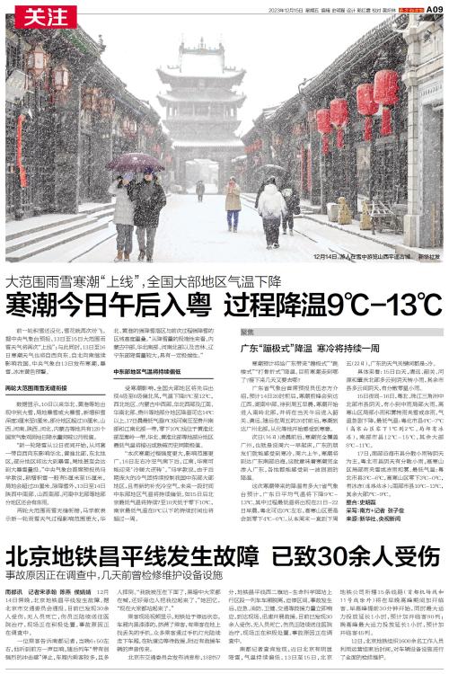 据中央气象台预报,13日至15日大范围雨雪天气将再次“上线”;与此同时,13日至16日寒潮天气也将自西向东、自北向南继续影响我国。中央气象台13日发布寒潮、暴雪、冰冻黄色预警。