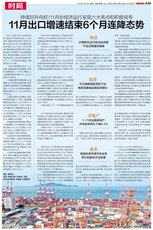 昨日,国新办举行新闻发布会,国家统计局新闻发言人、总经济师、国民经济综合统计司司长刘爱华介绍2023年11月份国民经济运行情况。