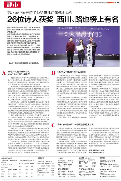12月17日,第八届中国长诗公益品鉴暨第八届中国长诗奖颁奖典礼在广东佛山举办。