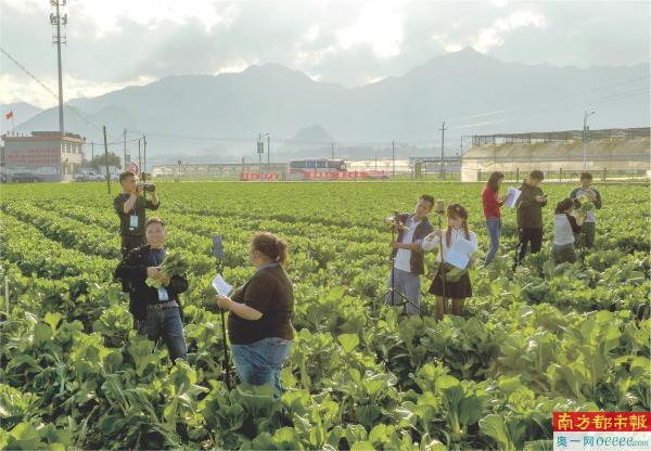 12月14日,清远连州西岸镇河田村,在连州菜心省级现代农业产业园标准化生产示范基地,每隔几米就能见到一个直播团队,好销量让主播笑得合不拢嘴。 南都拍客 谢应雄 摄