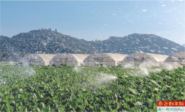 西岸镇东江村,基地全自动喷洒灌溉技术,实现水肥一体化,农民足不出户即可完成喷淋。 南都拍客 谢应雄 摄
