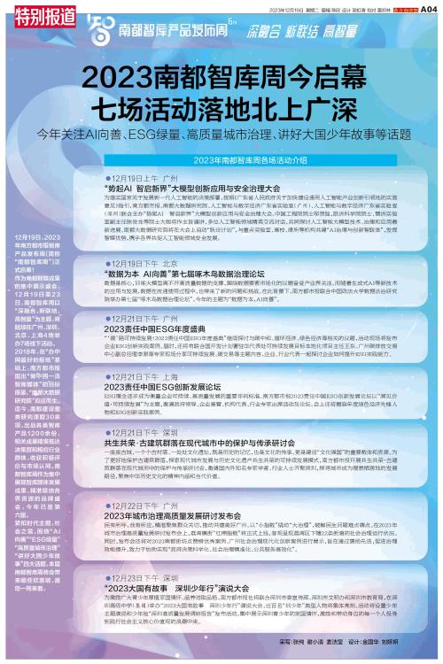 12月19日至23日,南都智库周以“深融合,新联结,高智量”为主题,将陆续在广州、深圳、北京、上海4地举办7场线下活动。