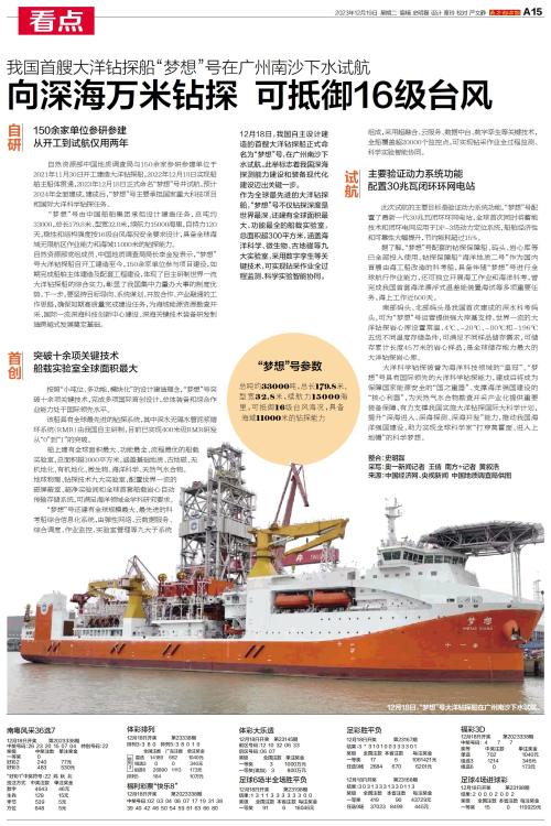 12月18日,我国自主设计建造的首艘大洋钻探船正式命名为“梦想”号,在广州南沙下水试航。