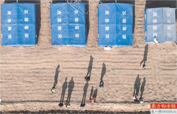 人们在震后与砂涌赛跑,幸好救援力量及时赶到。寒冬深夜,金田村附近的公路上,前来救援的大货车和挖掘机来来往往,通宵未停。青海蓝天救援队相关负责人马兴军告诉南都、N视频记者,“我们有24名队员在现场,准备通宵赶工,当晚要搭好几十顶帐篷。”寒夜过去,救援继续。