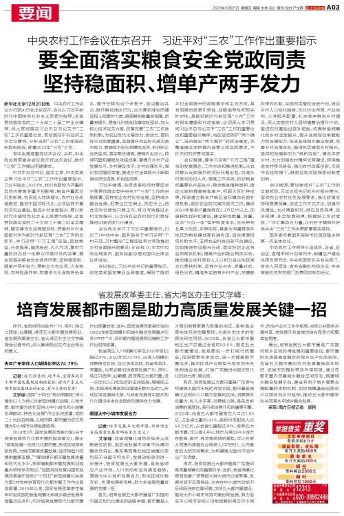 要全面落实粮食安全党政同责 坚持稳面积、增单产两手发力