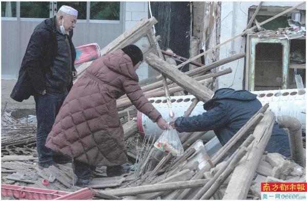 邻居大娘马努给牙向南都记者回忆起当时的情景,依然忍不住心疼得抹眼泪。“我赶去的时候,她孙子已经被救出来了,她的侄女被一根木头压住头,脸上都是血。”那块木头又被土块压着,马努给牙和张海吉者都搬不动。