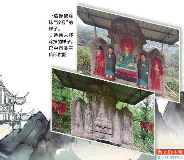 近日,四川巴中市南江县新发现的一处开凿于北魏晚期、距今1400多年的摩崖造像,被当地村民信众以“还愿”为由用颜料涂抹“毁容”。