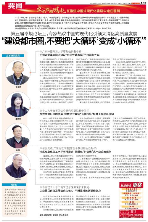 12月23日,由广东经济学会主办,中共广东省委党校(广东行政学院)承办的第五届卓炯论坛在省委党校举行。