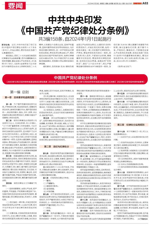 近日,中共中央印发了修订后的《中国共产党纪律处分条例》,并发出通知,要求各地区各部门认真遵照执行。