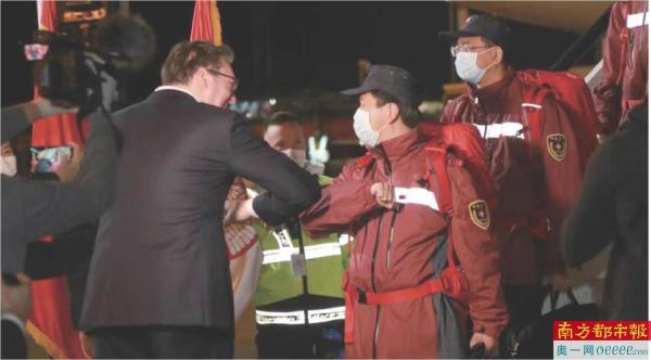塞尔维亚总统武契奇与中国专家碰肘致意的镜头,在网络上刷屏。 南都资料图