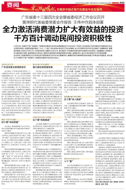 12月29日,中国共产党广东省第十三届委员会第四次全体会议暨省委经济工作会议在广州召开。