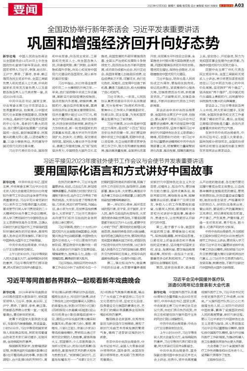 中共中央总书记、国家主席、中央军委主席习近平29日在北京人民大会堂接见参加2023年度驻外使节工作会议的全体使节并发表重要讲话。