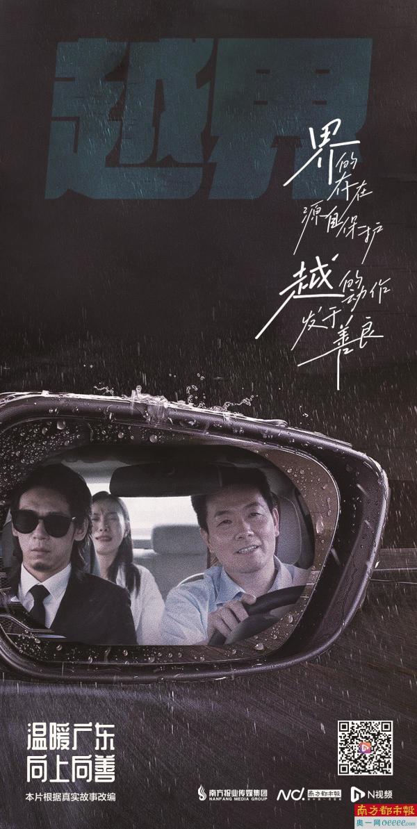 《越界》的真实原型取材自广州的哥朱光雄。2023年2月12日上午,在广州白云区岗贝路附近,广州公交集团广骏公司出租车司机朱光雄接载了一名约二十岁的女孩。女孩情绪低落,一路哭泣,直到在番禺区海鸥岛下车。出于担心,朱光雄一直在附近守护。一段时间后,女孩突然翻越护栏跳入水中,危急时刻,朱光雄不顾安危第一时间跳入冰冷的水中施救,及时制止了悲剧发生。