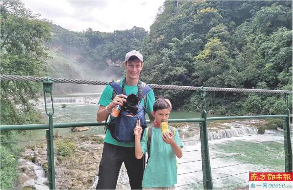 欧海洋与儿子一起旅行的生活照。