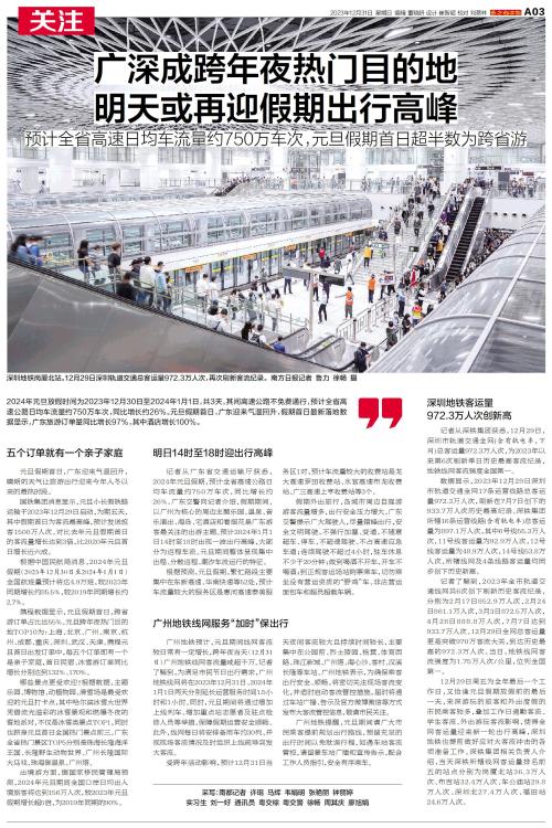 广深成跨年夜热门目的地 明天或再迎假期出行高峰