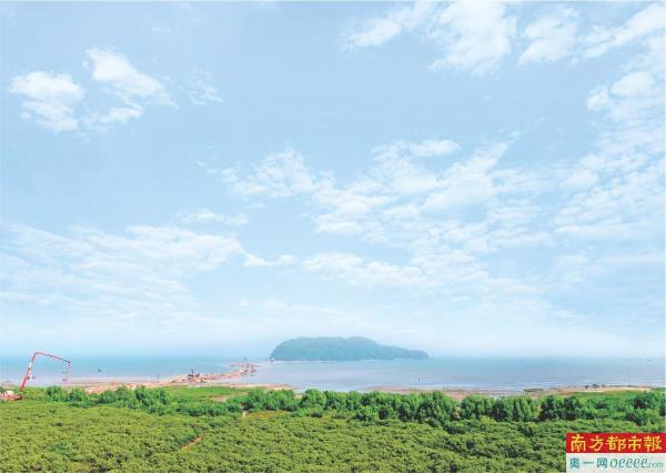 公园分两期建设,一期为海岸带生态修复工程,投资规模0.95亿元,目前已完工,完成堆填整治滩涂3072亩,种植红树林803万株,修建有海洋环境监测站、5个景观平台(522平方米)、3个观鸟亭(405平方米)以及2781平方米景观栈道、100米生态观光及科普长廊。二期工程计划投资2.45亿元,项目计划于2024年6月完工。