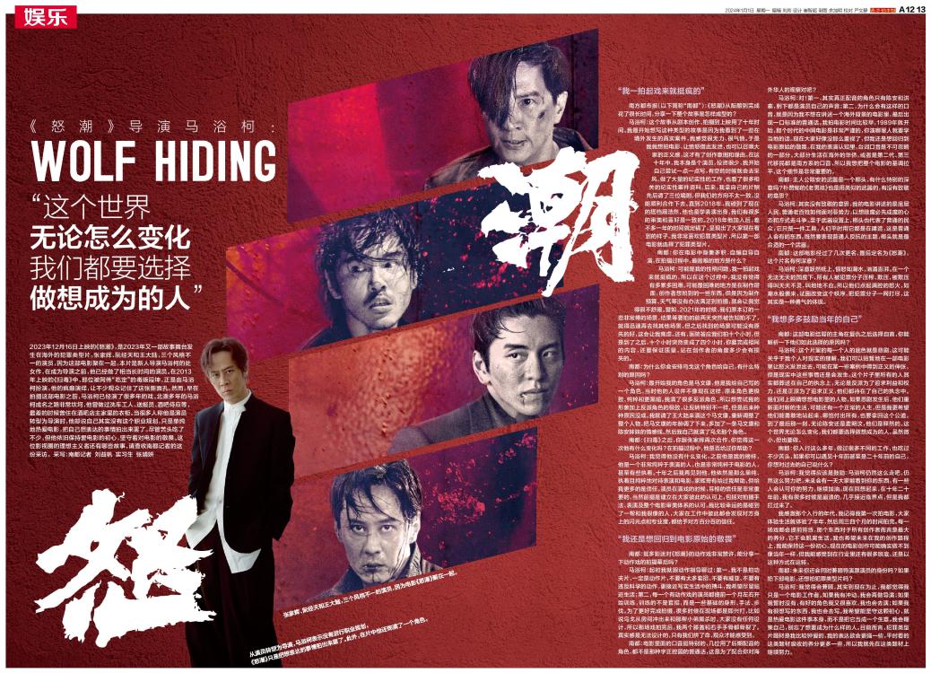 2023年12月16日上映的《怒潮》,是2023年又一部故事舞台发生在海外的犯罪类型片。张家辉、阮经天和王大陆,三个风格不一的演员,因为这部电影聚在一起。本片是新人导演马浴柯的处女作,在成为导演之前,他已经做了相当长时间的演员。在2013年上映的《扫毒》中,那位被阿伟“吃定”的毒贩段坤,正是由马浴柯扮演。他的疯癫演绎,让不少观众记住了这张新面孔。然而,早在拍摄这部电影之前,马浴柯已经演了很多年的戏。北漂多年的马浴柯成名之路非常坎坷,他曾做过洗车工人、送报员、酒吧侍应等,最差的时候曾住在酒吧店主家里的衣柜。当很多人称他是演员转型为导演时,他却说自己其实没有这个职业规划,只是单纯地热爱电影,把自己想表达的事情拍出来罢了。尽管苦头吃了不少,但他依旧保持爱电影的初心,坚守着对电影的敬畏。这位影视圈的理想主义者还有哪些故事,请查收南都记者的这份采访。