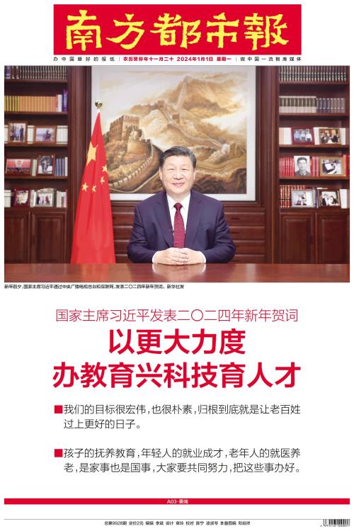 新年前夕,国家主席习近平通过中央广播电视总台和互联网,发表了二〇二四年新年贺词。