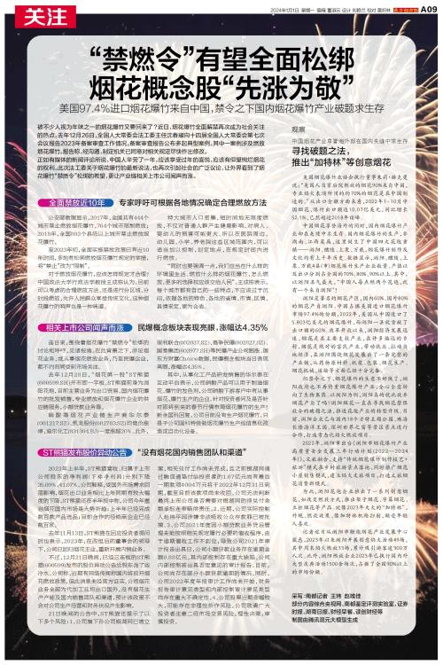 “禁燃令”有望全面松绑 烟花概念股“先涨为敬”