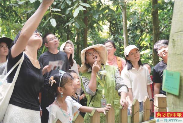 刘佳宜在华南植物园中给游客做导览。