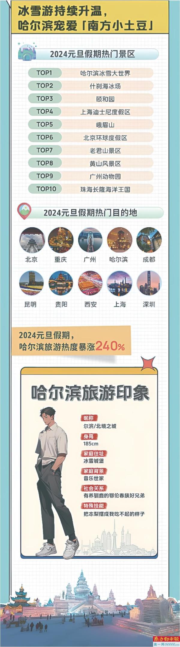 元旦假期期间,哈尔滨可谓“一夜爆火”。社交媒体上也出现了众多关于哈尔滨宠爱“南方小土豆”“马铃薯公主”的热门内容。