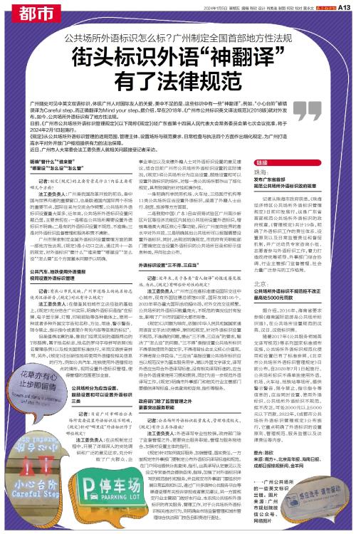 日前,《广州市公共场所外语标识管理规定》(以下简称《规定》)经广东省第十四届人民代表大会常务委员会第七次会议批准,将于2024年2月1日起施行。