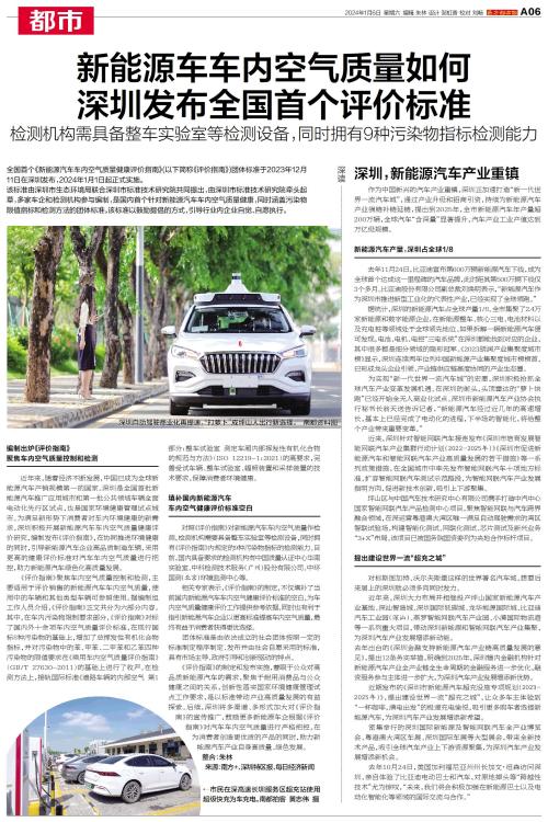 新能源车车内空气质量如何 深圳发布全国首个评价标准