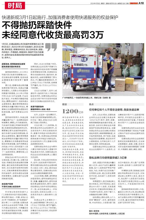 不得抛扔踩踏快件 未经同意代收货最高罚3万