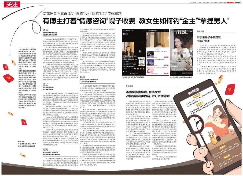 有博主打着“情感咨询”幌子收费 教女生如何钓“金主”“拿捏男人”