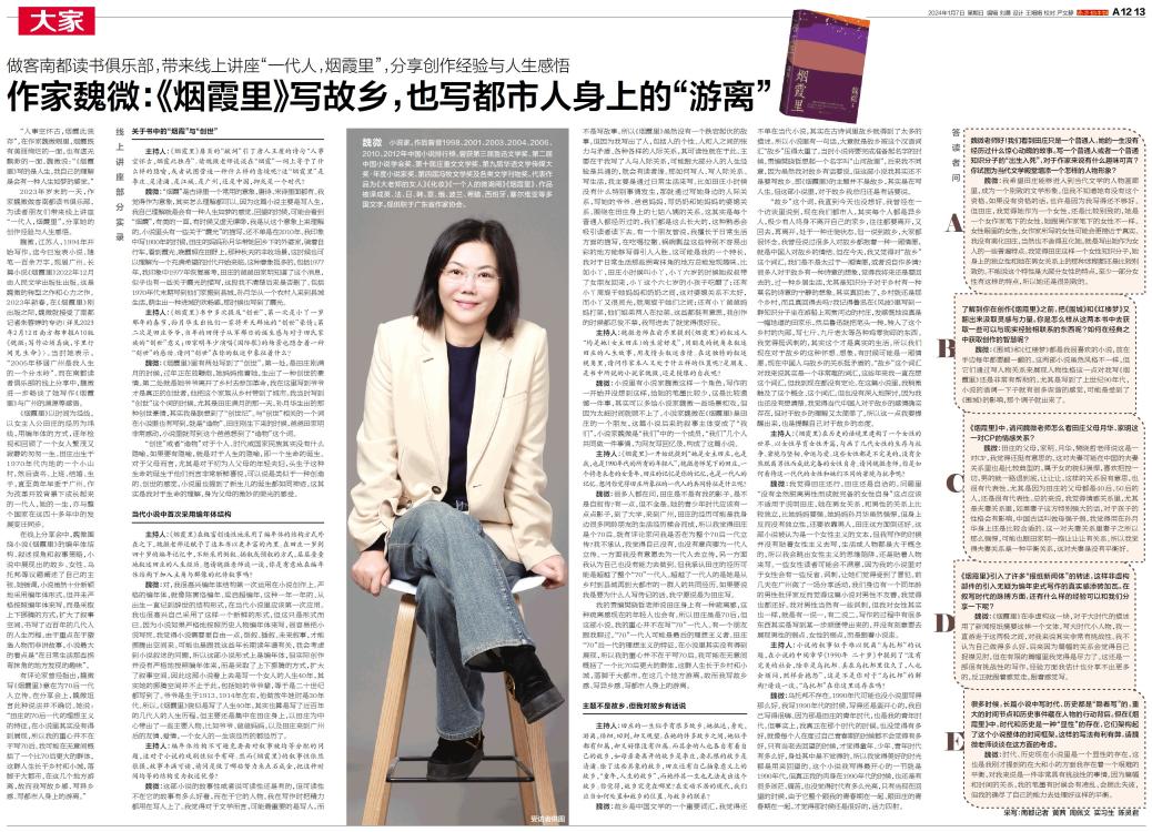 作家魏微:《烟霞里》写故乡,也写都市人身上的“游离”