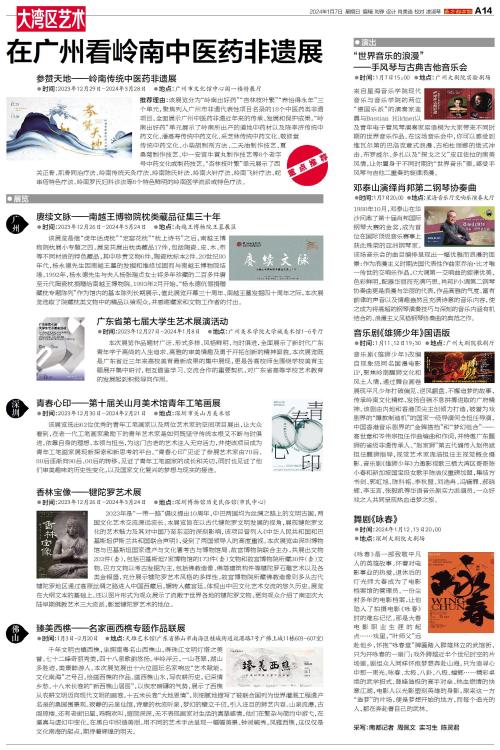 重点推荐 参赞天地——岭南传统中医药非遗展 ●时间:2023年12月29日-2024年3月28日 ●地点:广州市文化馆中心阁一楼特展厅 推荐理由:该展览分为“岭南出好药”“杏林枝叶繁”“养