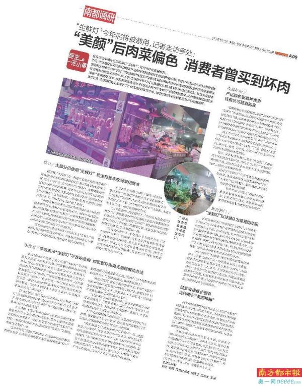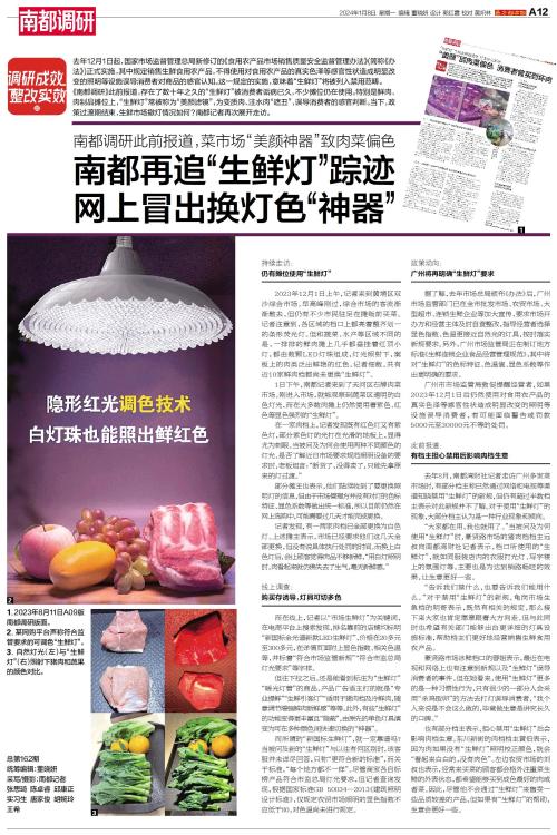 据了解,去年市场总局颁布《办法》后,广州市场监管部门已在全市批发市场、农贸市场、大型超市、连锁生鲜企业等加大宣传,要求市场开办方和经营主体及时自查整改,指导经营者选择显色指数、色温更接近自然光的灯具,按时落实新规要求。另外,广州市场监管局正在制订地方标准《生鲜连锁企业食品经营管理规范》,其中将对“生鲜灯”的色标特征、色温值、显色系数等作出更明确的要求。