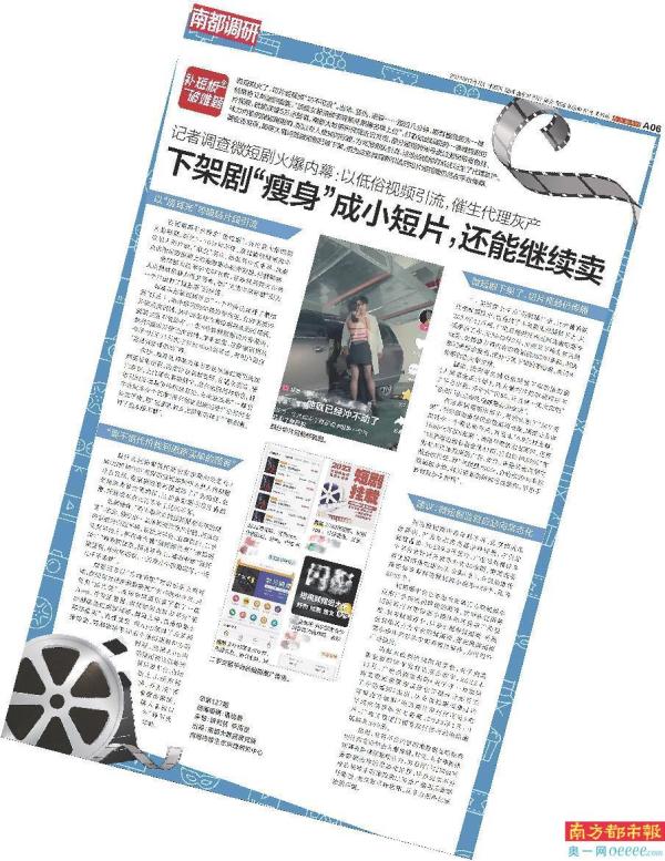 南都调研此前报道,部分短视频账号通过剪辑带有色情、暴力内容的微短剧,配以夺人眼球的标题,为完整剧集引流,这些短视频背后还衍生了代理灰产。调查还发现,即使大量问题微短剧已被下架,但为这些微短剧引流的切片短视频仍然在平台传播。