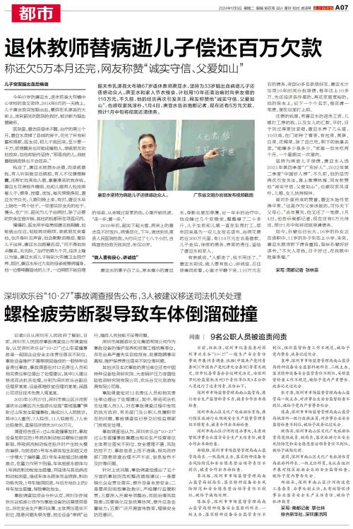 日前,深圳市人民政府事故调查组公布调查报告,认定深圳欢乐谷“10·27”过山车碰撞事故是一起因企业安全主体责任落实不到位、事故设备维护不善等原因造成的一般特种设备责任事故。