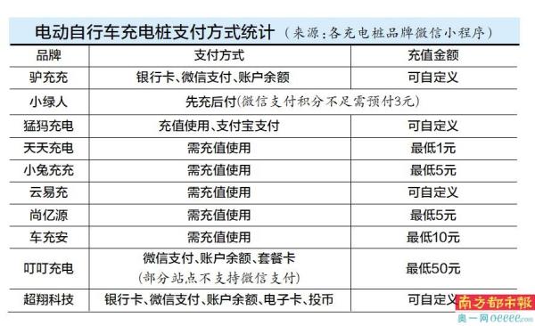 作为充电桩解决方案提供商,猛犸充电对接过大大小小不同的运营商。袁建平观察发现,目前选择预付方式的运营商较多,其中又以充值方式居多。南都·湾财社记者统计了市面上使用频率较高的10款电动自行车充电桩支付情况,发现天天充电、小兔充充、云易充、尚亿源和车充安等5款充电桩必须充值后才能使用,其中有4款充电桩设置了最低充值金额,从1元到10元不等。