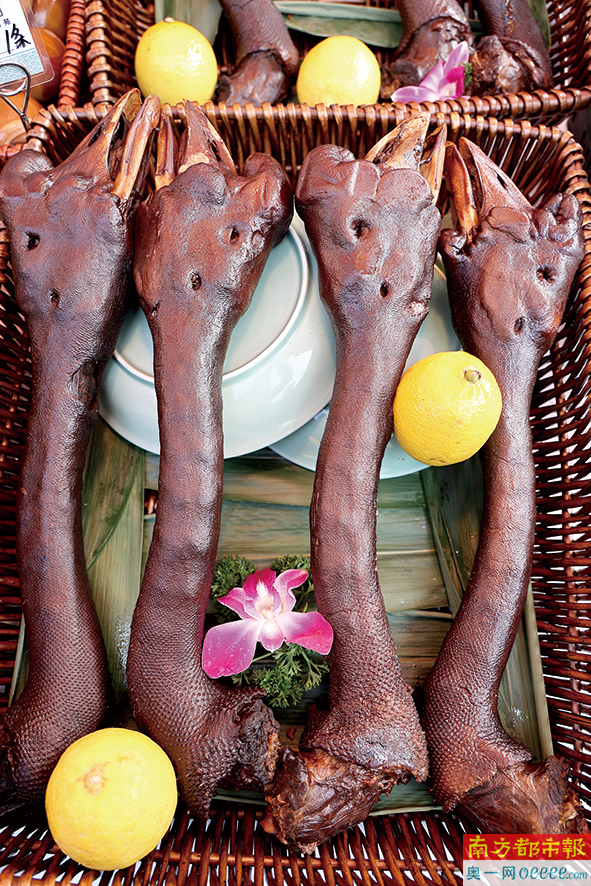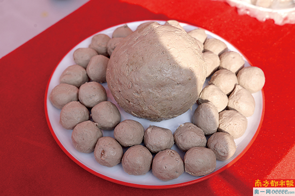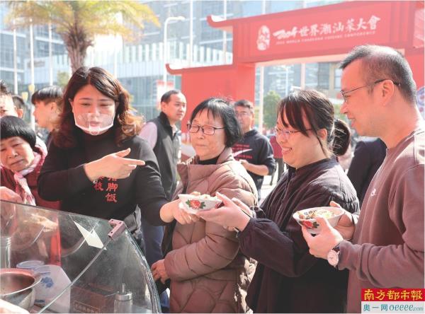 大会最热闹的地方,非英歌舞广场的“食在广东”湾区美食嘉年华展区莫属。狮头鹅、牛肉丸、鱼丸、鱼饭、甘草水果、猪肠胀糯米等潮汕美食,征服了各位吃货的味蕾。澄海老柴枝猪脚饭展位前更是排起一条长龙,因为人人都能免费领取一份猪脚饭。“我们潮汕菜讲究鲜,这些猪脚都是早上刚卤好送过来的。我们想着让大家都能尝尝澄海东里的猪脚饭,不收钱免费吃。大家很热情,2个小时左右就已经送出2000碗猪脚饭了。”澄海老柴枝猪脚饭负责人说。