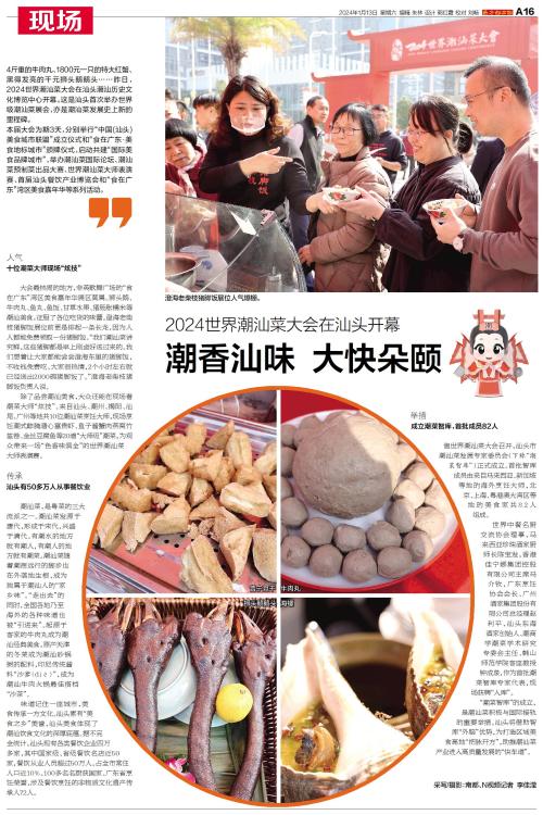 4斤重的牛肉丸、1800元一只的特大红蟹、黑得发亮的千元狮头鹅鹅头……昨日,2024世界潮汕菜大会在汕头潮汕历史文化博览中心开幕。这是汕头首次举办世界级潮汕菜展会,亦是潮汕菜发展史上新的里程碑。
