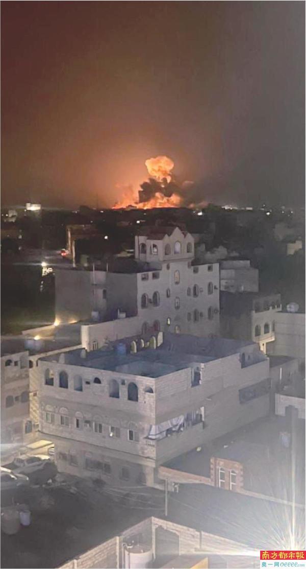 也门胡塞武装称美英空袭也门多处目标。这是1月12日在也门首都萨那拍摄的空袭后的爆炸画面。 新华社发