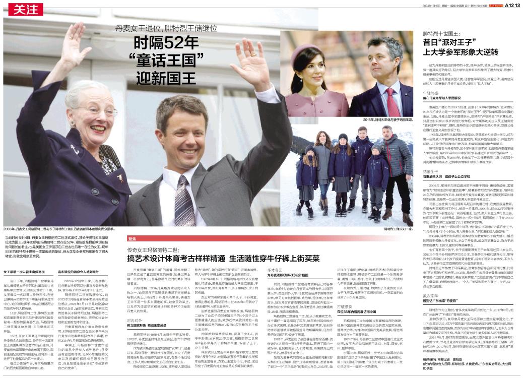 当地时间1月14日,丹麦女王玛格丽特二世正式退位,其长子腓特烈王储继位成为国王。
