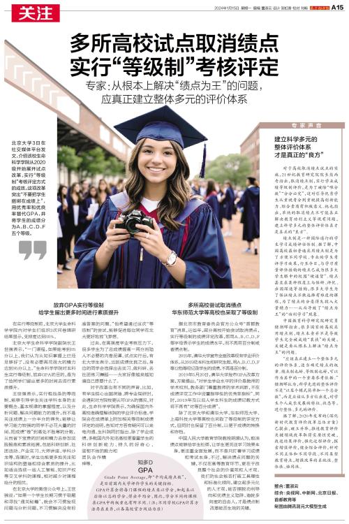 北京大学3日在社交媒体平台发文,介绍该校生命科学学院从2020级开始展开试点改革,实行“等级制”考核评定方式的成效。