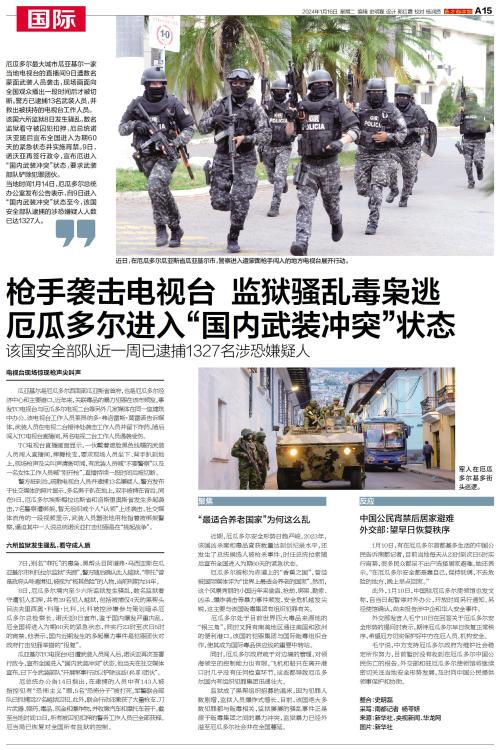 枪手袭击电视台 监狱骚乱毒枭逃 厄瓜多尔进入“国内武装冲突”状态
