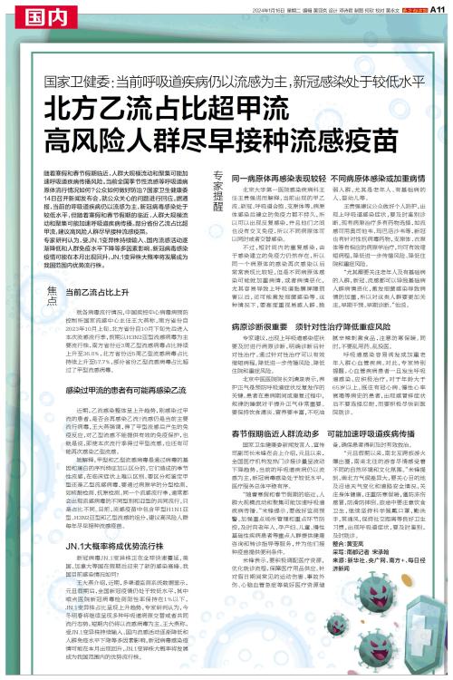 北方乙流占比超甲流 高风险人群尽早接种流感疫苗