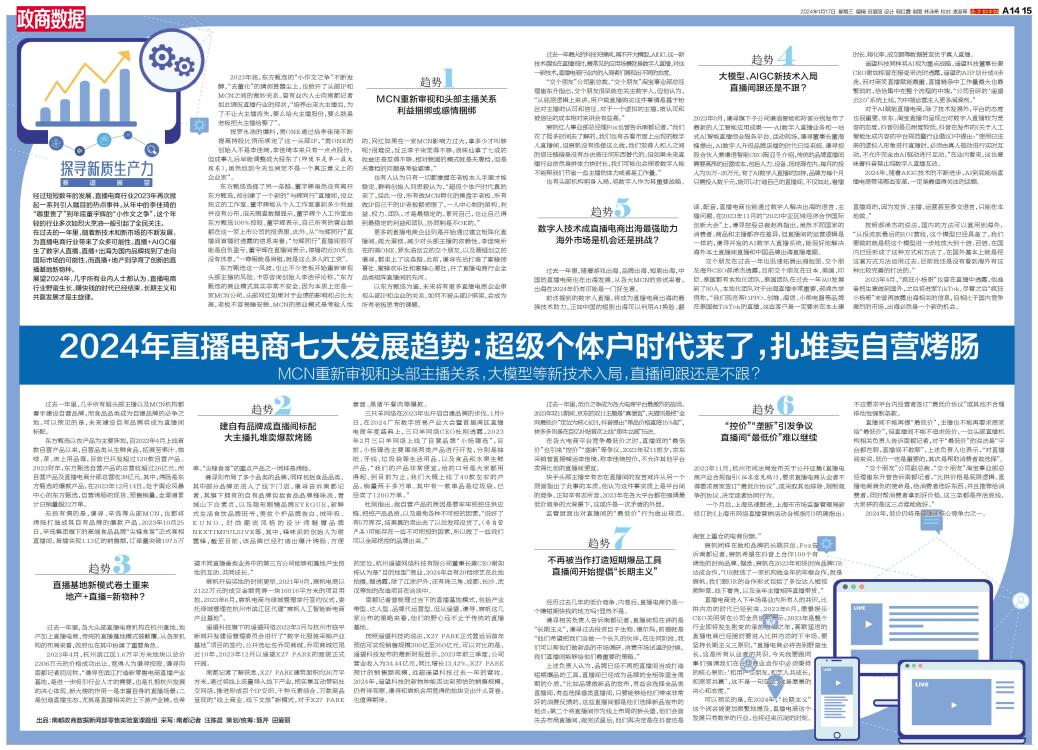 展望2024年,几乎所有业内人士都认为,直播电商行业野蛮生长、赚快钱的时代已经结束,长期主义和共赢发展才是主旋律。