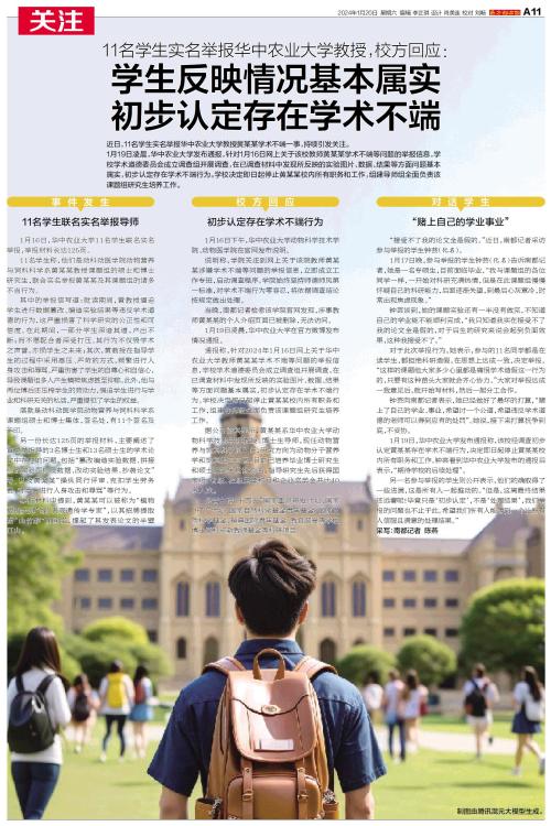 近日,11名学生实名举报华中农业大学教授黄某某学术不端一事,持续引发关注。