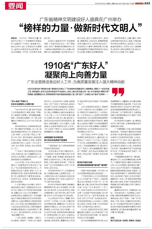 1月20日,“榜样的力量·做新时代文明人”广东省精神文明建设好人盛典在广州举办。