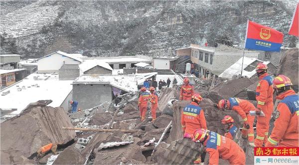 受冷空气影响,当地气温骤降,现场救援人员克服雨雪冰冻、道路受阻等困难,利用铲车、挖掘机、铁锹等,采取由上至下、层层削减的方式,对失踪人员被埋区域实施快速挖掘。同时,利用人工手刨的方法,对核心区实施安全保护式清理。