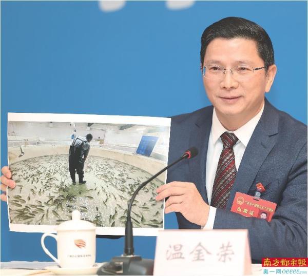 第一个就是“大黄鱼的故事”。温金荣举着惠州突破南海大黄鱼养殖技术的照片表示:“经过惠州企业科研人员的不懈努力,已经掌握了南海大黄鱼这一种群的种源关键核心技术,在全国率先实现了南海大黄鱼的人工育苗、保活运输和深海养殖。”目前,惠州正努力以“一条鱼”打造百亿级大产业,建设蓝色“大粮仓”。