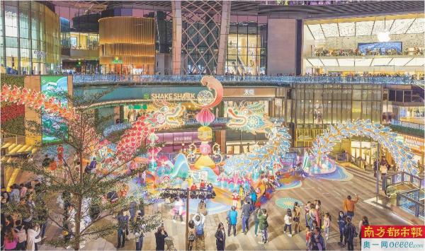 1月22日,广州天河天环Parc Central双龙戏珠灯饰吸引市民打卡拍照。 南都拍客 张业斌 摄