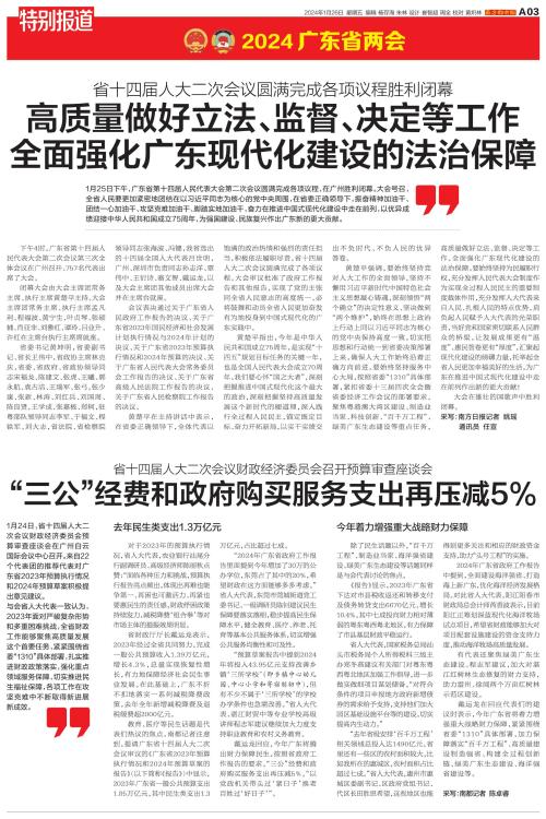 1月25日下午,广东省第十四届人民代表大会第二次会议圆满完成各项议程,在广州胜利闭幕。大会号召,全省人民要更加紧密地团结在以习近平同志为核心的党中央周围,在省委正确领导下,振奋精神加油
