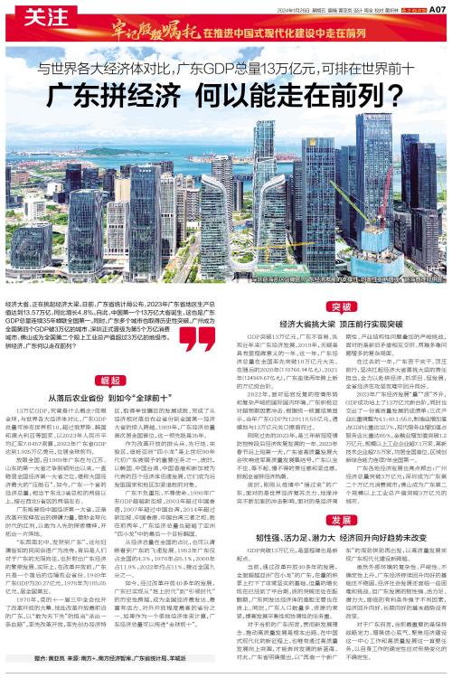 经济大省,正在挑起经济大梁。日前,广东省统计局公布,2023年广东省地区生产总值达到13.57万亿,同比增长4.8%。